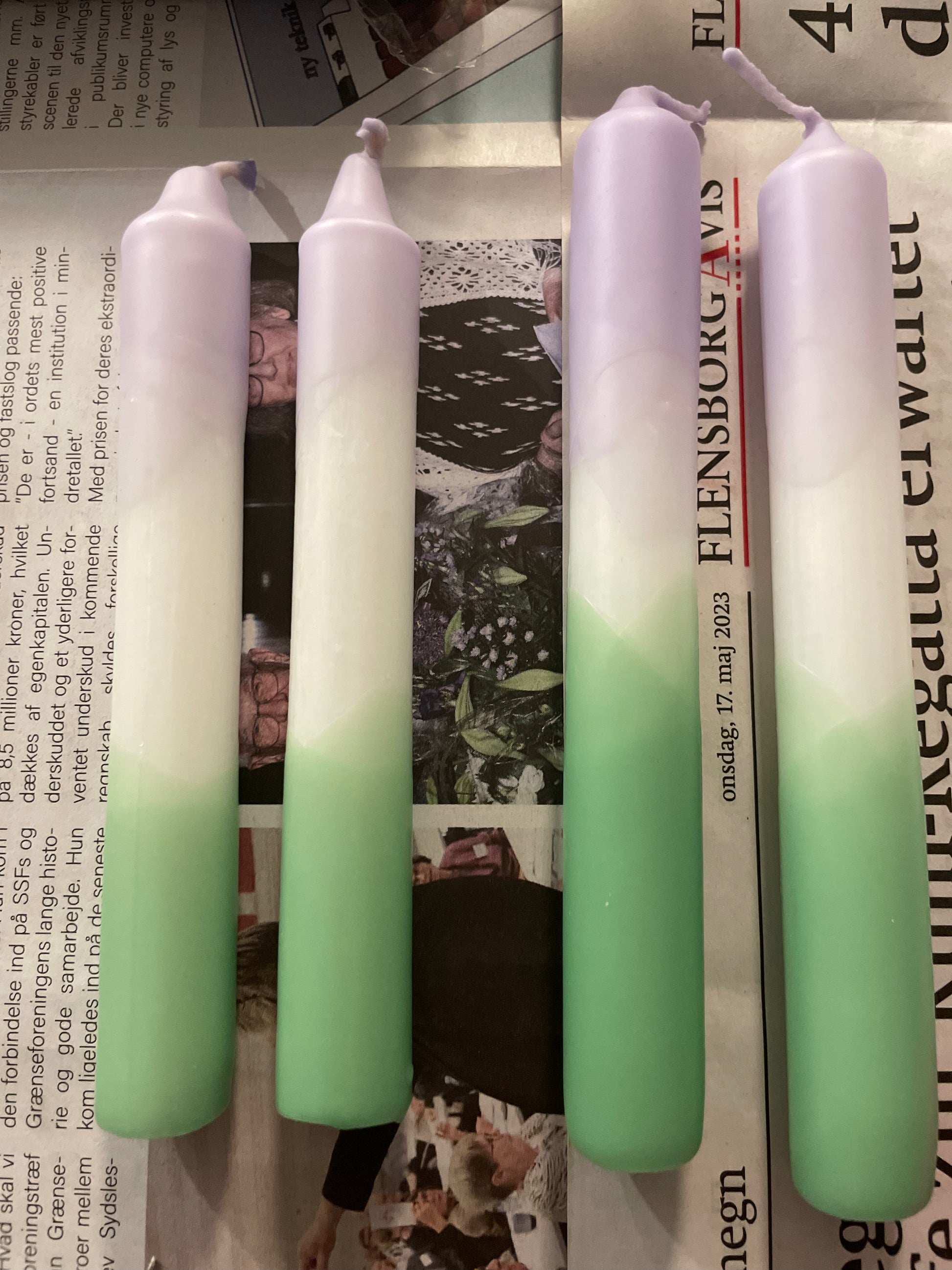 Doppelt gedippte Kerze Flieder/Grün